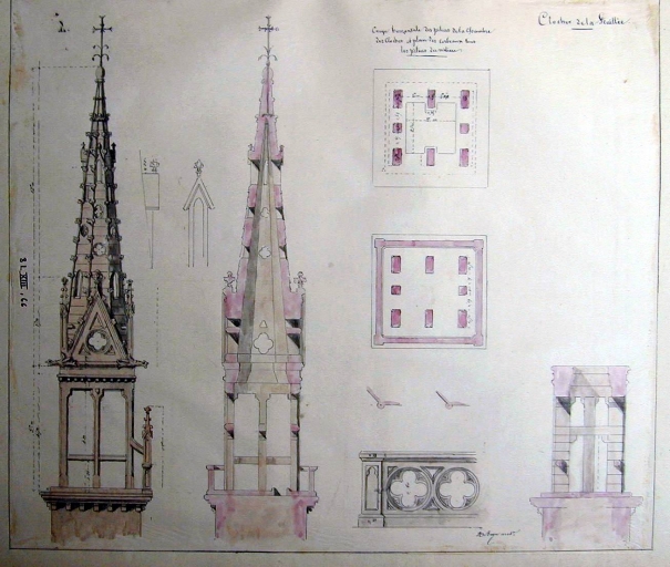 Clocher. Dessins de l'architecte Jules Boyer,1858 (A. E. Quimper, 8 L XIII 66)Immatriculation