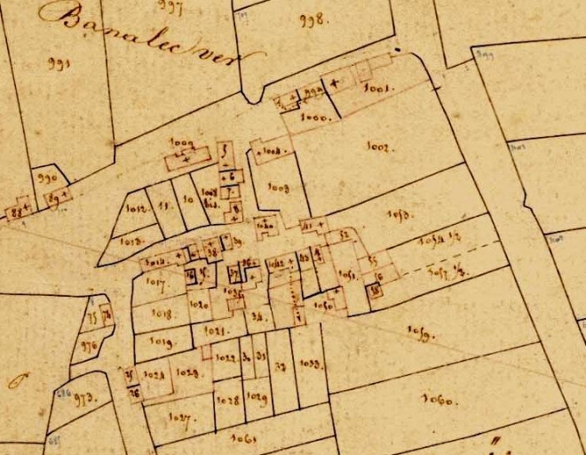 Le village en 1836. Extrait du cadastre de Berrien, section K 1 (A.D. Finistère, 3 P 78)Immatriculation