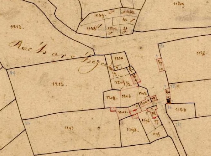 Le village en 1836. Extrait du cadastre de Berrien, section K 2 (A.D. Finistère, 3 P 86)Immatriculation