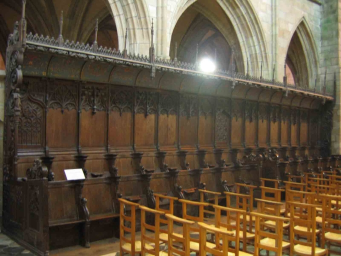 Ensemble de stalles dans la cathédrale Saint-Paul-Aurélien (contre les murs nord et sud du choeur),