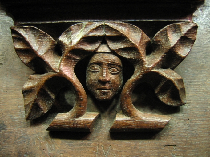 Miséricorde : tête d'homme cachée derrière des feuillesImmatriculation