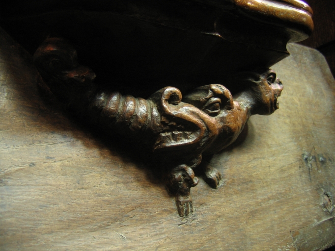 Miséricorde : détail de la tête située sur le ventreImmatriculation