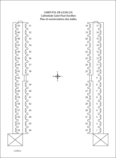 Ensemble de stalles dans la cathédrale Saint-Paul-Aurélien (contre les murs nord et sud du choeur),