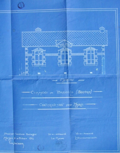 Projet d'une mairie. Elévation, par E. Guiomar, 1914 (A. D. Finistère, 2 O 128)Immatriculation