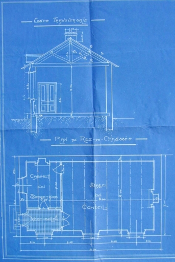 Projet d'une mairie. Plan et coupe, par E. Guiomar, 1914 (A. D. Finistère, 2 O 128)Immatriculation