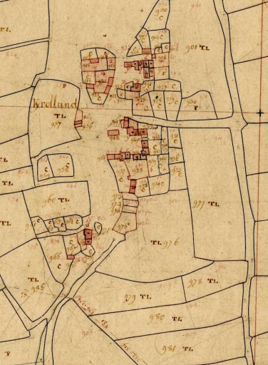 Le hameau en 1813. Extrait du cadastre de Loqueffret, section A 3 (A. D. Finistère, 3 P 21)Immatriculation