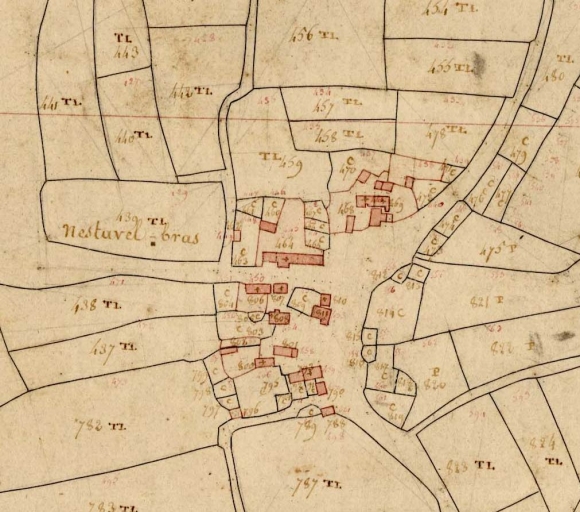 Le hameau en 1813. Extrait du cadastre de Loqueffret, section A 3 (A. D. Finistère, 3 P 21)Immatriculation