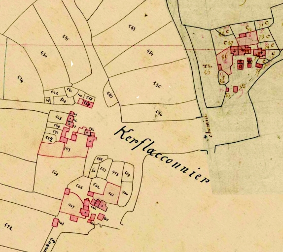 Extraits assemblés des cadastres de Loqueffret(1813) et Brennilis (1884). (A. D. Finistère, 3 P 21 et 3P 142)Immatriculation