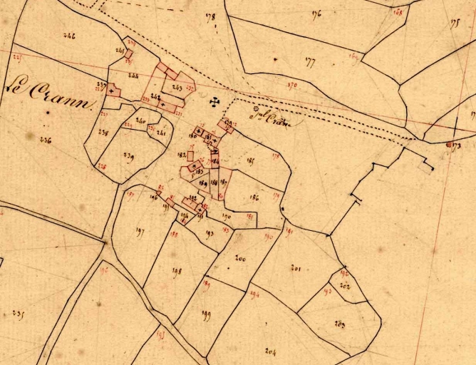 La partie nord-ouest du village du Crann en 1836. Extrait du plan cadastral, section G 1 (A.D. Finistère, 3 P 10)Immatriculation
