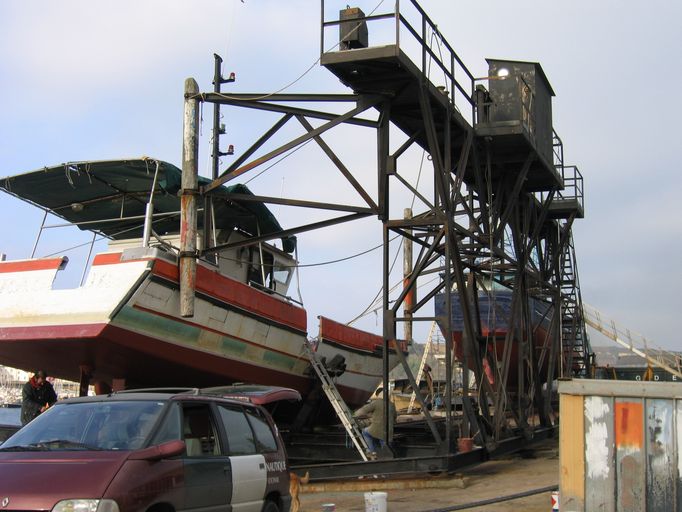 Partie haute du slipway avec treuil à bateauImmatriculation