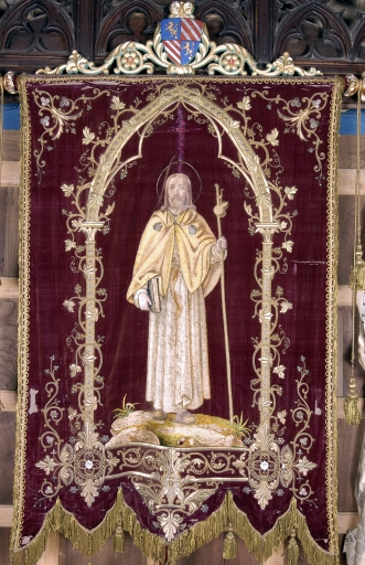 Bannière de procession paroissiale : Saint Jacques, Vierge à l'Enfant,