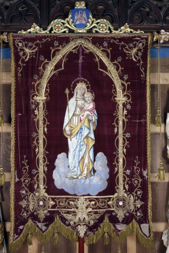 Bannière de procession paroissiale : Saint Jacques, Vierge à l'Enfant,