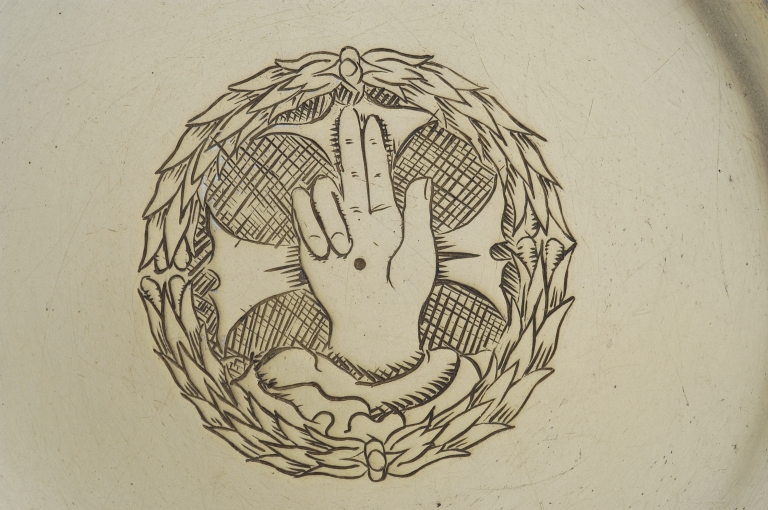 Patène : détail de la main bénissanteImmatriculation