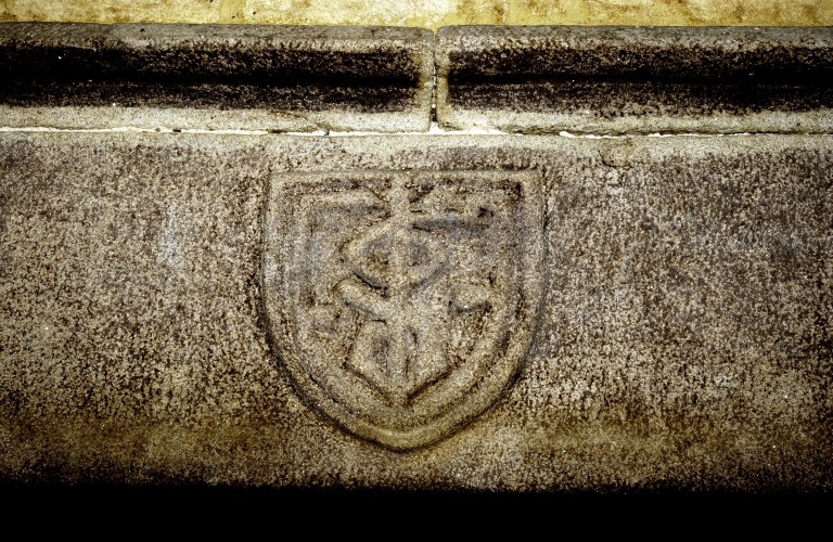 Vue intérieure, cheminée, détail, blason daté 1667Immatriculation
