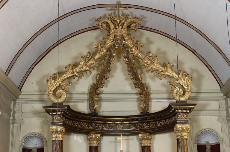 Ensemble du maître-autel : autel, tabernacle, exposition, 2 gradins d'autel, 2 degrés d'autel, baldaquin d'autel,