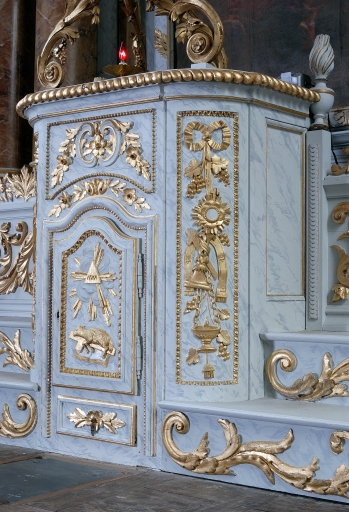 Ensemble du maître-autel : autel, tabernacle, 2 gradins d'autel, retable, 2 degrés d'autel, exposition,