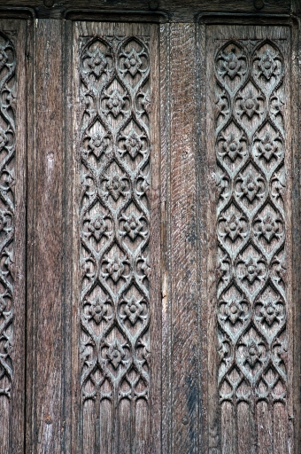 Vantail gauche : décor des panneaux supérieursImmatriculation