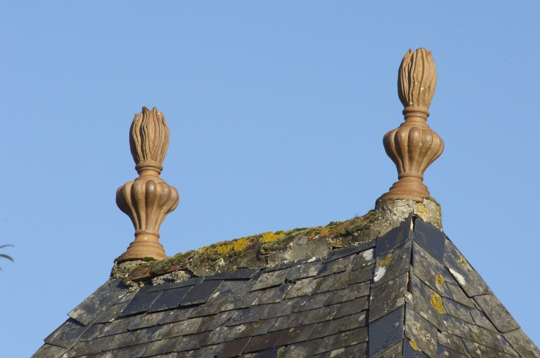 Pavillons de part et d'autre du logis : détail des pots à feuImmatriculation