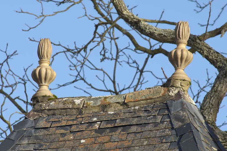 Pavillon à l'est du logis : détail des pots à feuImmatriculation