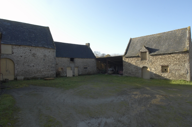 Vue de la grange-porche, du logis du fermier (?) et d'une dépendanceImmatriculation