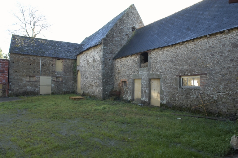 Vue du logis du fermier (?), de la grange-porche et de l'écurie depuis la courImmatriculation