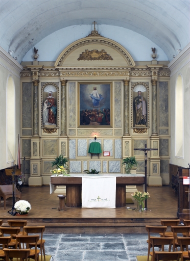 Ensemble du maître-autel : autel, tabernacle, 2 gradins d'autel, retable, degrés d'autel,
