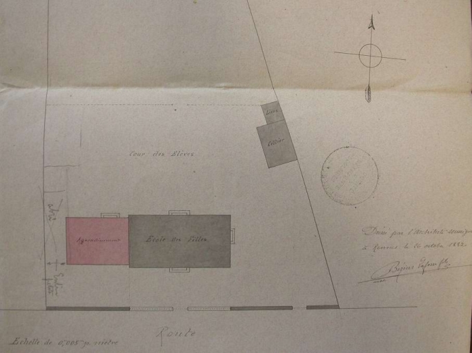 L'agrandissement de l'école sur un plan de 1882Immatriculation