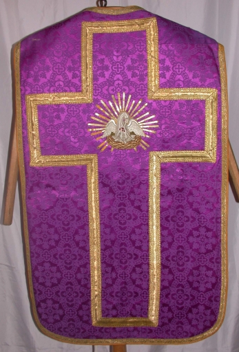 Ornement violet 2 : chasuble, bourse de corporal, étole, manipule, voile de calice,