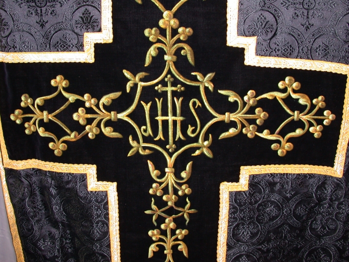 Ornement noir 4 : chasuble, bourse de corporal, étole, manipule, voile de calice,