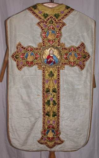 Ornement blanc 3 : chasuble, bourse de corporal, étole, manipule, voile de calice,