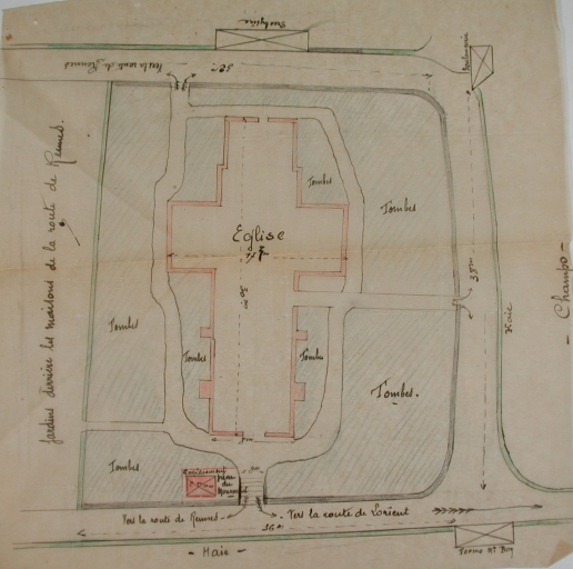 Plan schématique de l'emplacement prévu pour le monument aux morts, dessin sur calque, [1920]Immatriculation