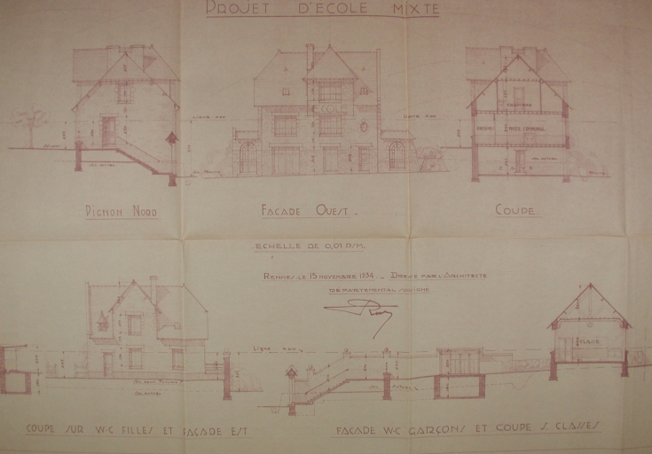 Elévation d'une école primaire (non réalisée), dressé par Pierre Laloy, architecte, 1934Immatriculation