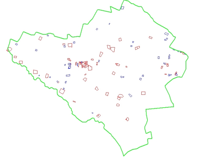 En bleu, les maisons et les fermes non analyséesImmatriculation