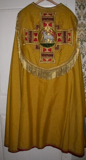 Ornement doré 2 : chape, chasuble, manipule, voile de calice et étole,