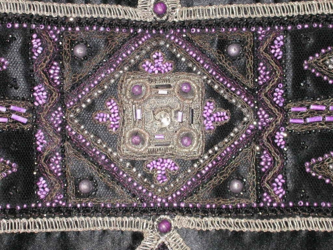 Ornement noir 2 : détail des adjonctions de perlesImmatriculation