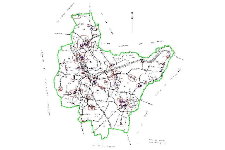 En bleu, les bâtiments non anlaysés ; en rouge, les bâtiments analysésImmatriculation