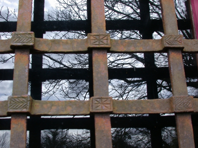 Détail de la ferronerie des barreaux.Immatriculation