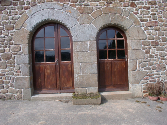 Ancien logis, portes jumelées à décor de boules.Immatriculation