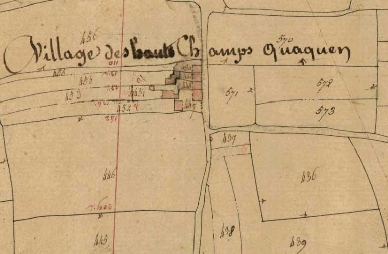 Fermes, alignement de deux logis, les Hauts Champs Quaquen (Longaulnay),
