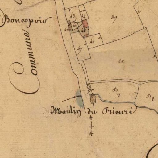 Extrait du cadastre de 1834, moulin du PrieuréImmatriculation