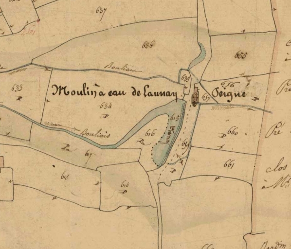 Extrait du cadastre de 1834, moulin de Launay-PeignéImmatriculation