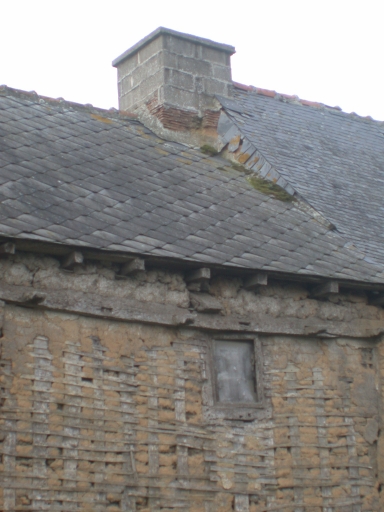 Façade arrière, détail pièce haute en pan de bois, au-desus du pasage cocherImmatriculation