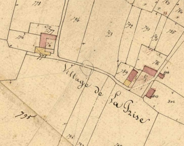 Le village de la Prise sur le cadastre de 1834Immatriculation