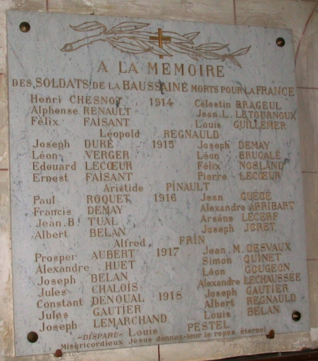 Tableau commémoratif des morts de la guerre 1914-1918,