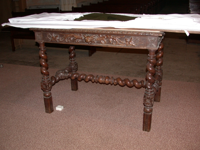 Ensemble de meubles civils : table, fauteuil, armoire-bibliothèque, pupitre à écrire debout,