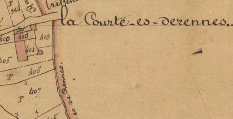 Fermes, alignement de trois logis, la Courte-es-Desrennes (La Chapelle-aux-Filtzméens),