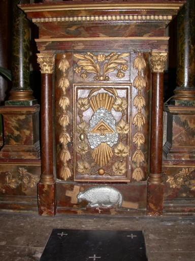 Ensemble du maître-autel : autel, tabernacle, exposition, 2 gradins d'autel, 2 degrés d'autel, baldaquin d'autel,