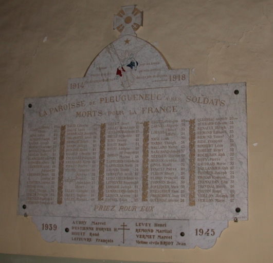 Tableau commémoratif des morts de la guerre 1914-1918,