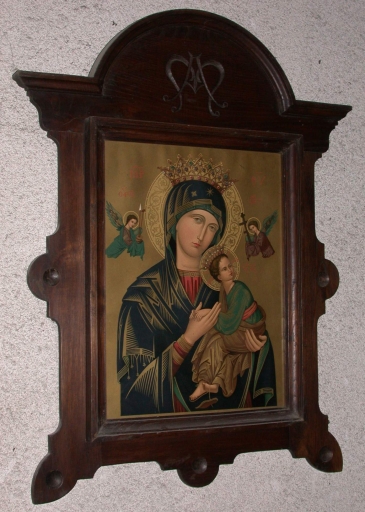 Estampe (?) encadrée : Vierge à l'Enfant, dite Notre-Dame du Parpétuel Secours,