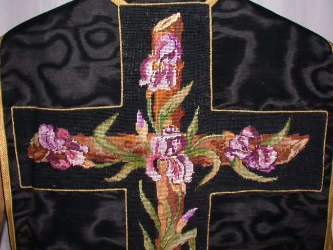 Ornement noir 4 : chasuble, bourse de corporal, étole, manipule, voile de calice,
